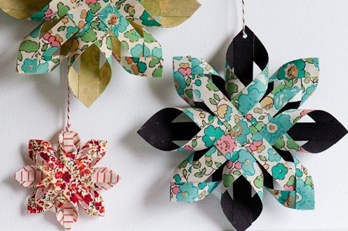 Estos adornos de Navidad hechos en casa me llaman mucho la atención. Son de Maggie Makes y me parecen sublimes… Se trata de estrellas de papel muy fáciles de hacer con papel, pegamento y tijeras, que además pueden servirte para reciclar trozos de papel de regalo o cuartillas de colores que no hayas utilizado completas.