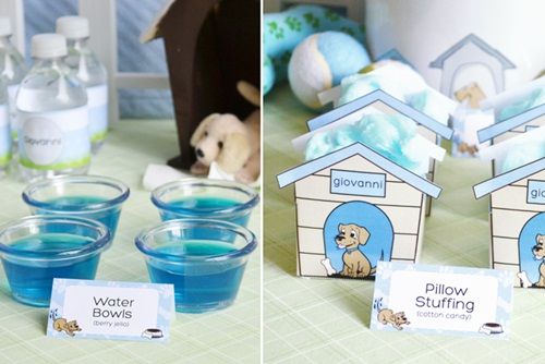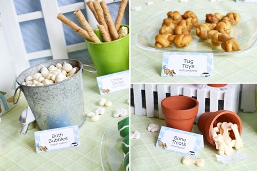 La fiesta infantil no sólo está basada en el diseño de las etiquetas de los platos y los toppers para los cupcakes, no… Además tiene muchos detalles más como la repostería creativa (incluidas las diveertidas huellas de perro) que la hacen muy especial…