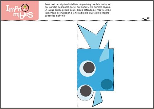 Esta invitación con forma de flor hawaiana se puede imprimir entrando en una web muy interesante, llena de ideas para niños, llamada Sapos y Princesas. Tienes varios modelos para elegir (pez, búho, etc.), y una vez impresas sólo tienes que seguir las instrucciones para doblarlas y escribir el texto en el sitio indicado.