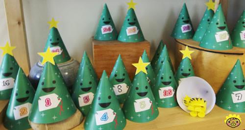 Para los que aún no tienen el Calendario de Adviento estos arbolitos también os pueden servir: imprimid 24, poner el número del día en cada una de las tarjeta, guardar un obsequio en el interior y … listo!