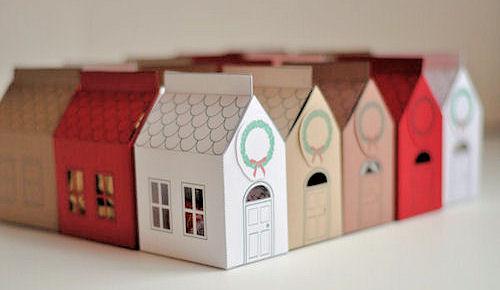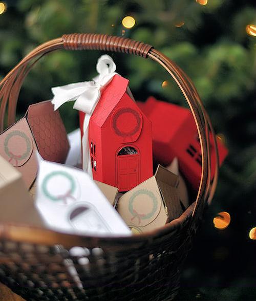 Las hemos encontrado en el blog de Design Mom, solamente tenéis que imprimir la plantilla, recortarla, doblarla por los puntos y antes de cerrarla del todo ponerle el detalle con el que queréis obsequiar a vuestros amigos o invitados Os dejamos aquà el pdf para descargaros el modelo. El imprimible también tiene una corona de Navidad, como las que se cuelgan en las puertas de las casas, otro bonito detalle. Si queréis podéis utilizar un lazo un poco ancho, que ademÔs de servir de adorno, ayuda a que la casita no se desmonte fÔcilmente y queda aún mÔs bonita.