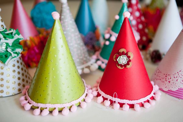 No es la primera vez que lanzamos ideas para personalizar los sombreros de cono de cumpleaños, pero es que cada vez nos sorprende algo mejor… Estos que hemos visto en el blog The Sweetest Ocassion son realmente encantadores y coquetos a más no poder… Están hechos en plan manualidades por una mamá que se tomó la molestia de buscar papel decorativo (si es posible, de empapelar), pequeños pompones y pasamanería para rematarlos… Son tan bonitos que el propio sombrerito puede ser el obsequio de los invitados.