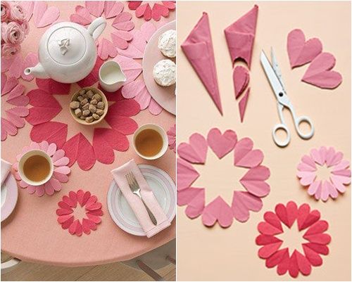 ”Qué bonitas guirnaldas de corazones para adornar la mesa!