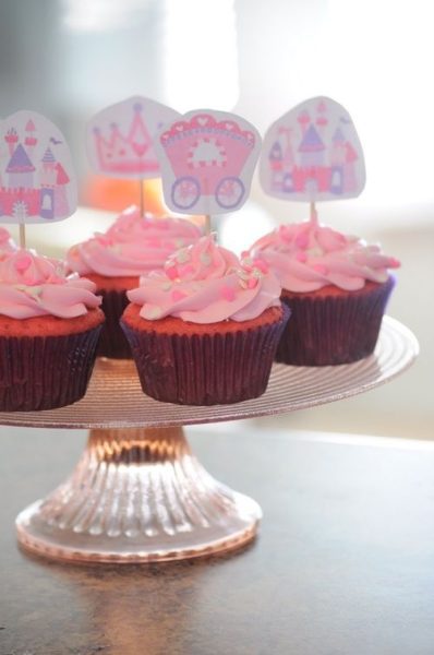 Estos cupcakes tienen un toque especial. No es sólo su color rosa o las bonitas imágenes de carrozas, castillos y demás detalles que los coronan, no… Es que fueron hechos para una niña especial: una peque, hija de una prima de la mamá del blog.