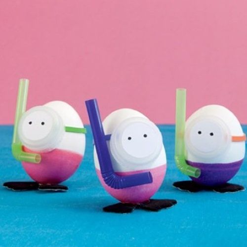 Por ejemplo, ¿qué tal disfrazar de buceadores a los huevos de Pascua? Es una idea muy divertida para hacer con niños, y tan sencilla que seguro que te preguntarás cómo no se te ocurrió nunca si alguna vez has ayudado a tus hijos a decorar huevos para el cole…