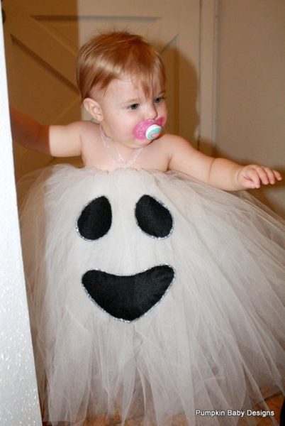 Esta niƱa estĆ” encantada con el tutĆŗ con cara de fantasma que le sirve de disfraz para Halloween... Sin duda, se encuentra muy favorecida y se debe sentir muy ligera, como una pequeƱa burbujita de jabón… Es una divertida idea vista en una tienda de Etsy que se llama Pumpkin Baby Designs y que realmente es muy coqueta…