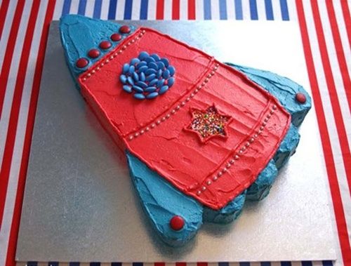 La tarta de cumpleaños es un cohete espacial realmente conseguido, ¿no crees?
