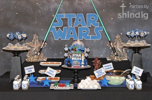 No creo que el estreno de ninguna de las películas de Star Wars haya podido tener un catering con mejor presentación que esta fiesta de cumpleaños que he encontrado en Kara’s Party Ideas… ¡Increíble la fiesta infantil temática preparada por Amanda para su peque de 5 años…! Todo hay que decirlo: esta mamá tan creativa tiene un divertido blog, y también una tienda en Etsy, donde comercializa artículos hechos por ella misma para fiestas infantiles.