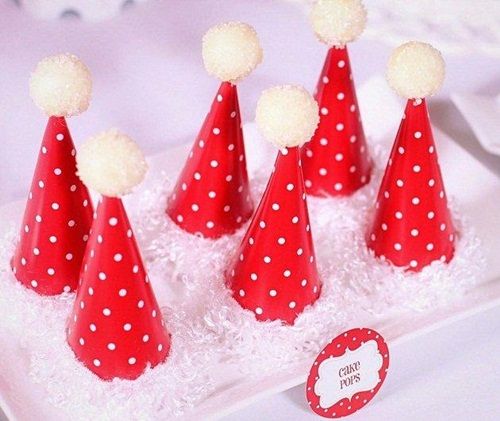 FĆjate que propuesta tan divertida: a alguien se le ocurrió la idea de situar losĀ cake-pops, no sobre palitos tipo piruleta, sino sobre conos rojos de topitos, como si fueran gorros de Santa Claus… La verdad es que tienen mucha gracia, pero se me ocurre que tambiĆ©n puede servir para cualquier otras celebración en casa, simplemente cambiando el estampado de los conos de fiesta, Āæno crees?