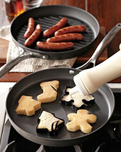 La idea original es emplear moldes especiales para pancakes, pero como no sabemos dónde los venden aquí, se nos ocurre que se pueden utilizar cortapastas metálicos (no de plástico, claro…). Estos moldes especiales para pancakes los puedes comprar en Williams-Sonoma, una tienda de menaje para la casa tradicional de Estados Unidos, que también sirve pedidos a España.
