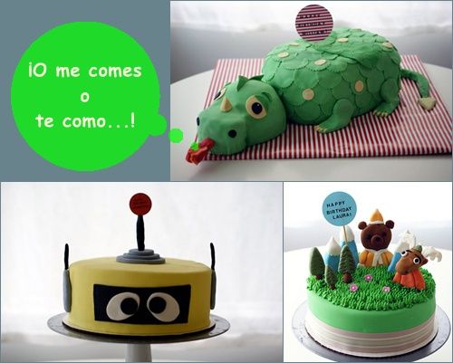 Estas tartas de cumpleaños son una gran idea y pueden servirte de inspiración para empezar a hacer tus propias creaciones de repostería. Las dos más sencillas son las tartas con caritas (de niño y de conejito con zanahoria), y sirven de ‘plantilla’ de iniciación para la decoración de tartas. A partir de ahí puedes empezar a hacer creaciones cada vez más complejas. Estos modelos los hemos visto en Ohdeedoh.