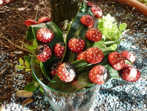 Un bote de cristal, tierra, las hojas bien enterradas y las mariquitas de chocolate por lo verde…