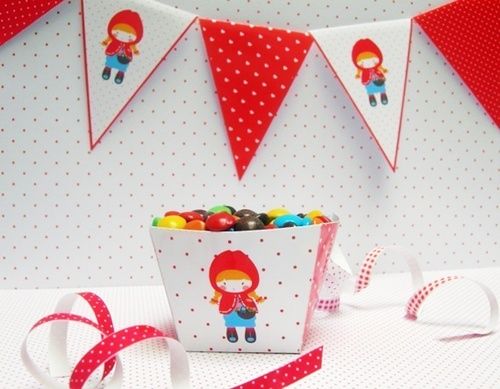 Me encantan todos los motivos, aunque el de Caperucita Roja me parece especialmente amoroso… Al hacer el pedido de uno de estos kits para decorar la fiesta, recibes un pdf en alta resolución con los siguientes archivos: un póster de bienvenida, mantel de cumpleaños, banderola para la fiesta con cuatro diferentes estampados, y dos estampados diferentes más.