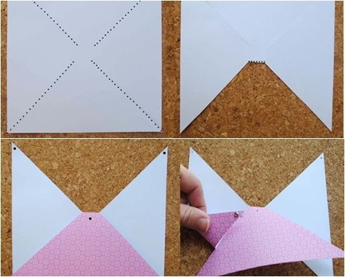 Los pasos son tan sencillos que no necesitan explicaciones. Simplemente ve siguiendo la secuencia grĆ”fica y haz pequeƱos agujeros en las esquinas que tengas que unir mediante el clip de sujección (se vende en papelerĆas).