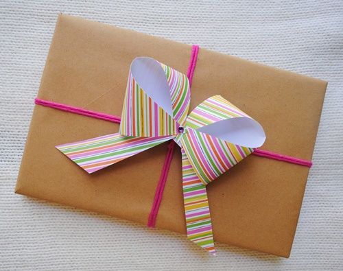 Estos lazos de papel quedan sublimes en cualquier regalo por sencillo que sea el papel elegido. Es mÔs, quedan tanto mejor cuanto mÔs sencillo y liso es el papel. En este caso, el lazo no se ha pegado al paquete, sino que se ha sujetado con un doble cordón. ¿Quieres aprender a hacerlos? Pues es bien fÔcil. Sólo necesitas un papel fuerte (con suficiente gramaje), si es posible con una de las caras estampadas como el que ves en la foto.