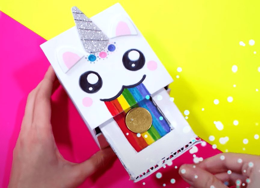 Os traigo este unicornio, manualidades faciles con cartulina,Ā que se traga todas las monedas que le deis podĆ©is utilizarlo de hucha o alcancĆa.