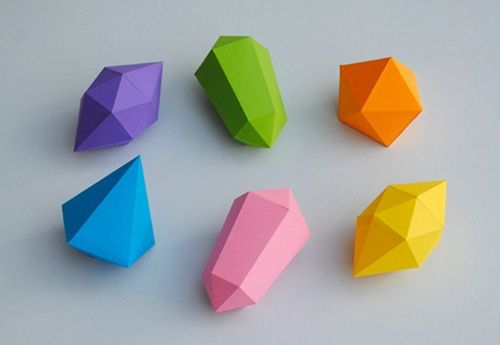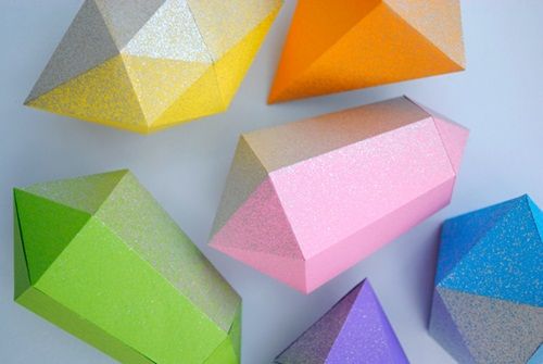 Además de pasarlo bien haciendo estas gemas, este proyecto permite a los niños abrir su mente a las formas abstractas, y a conceptos ásperos como la geometría… Para que sea más educativo, puedes pedirles que cuenten cuántos lados (o facetas) tiene cada diamante y también cuántos ángulos. ¡Tus peques te sorprenderán! (aunque siempre lo hacen…)