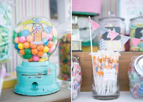Las mesas llenas de chuces y caramelos siempre gustan a los peques y, en una fiesta infantil, pueden llegar a ser todo un acierto. Hoy os traemos una mesa de golosinas con aires vintage, donde los botes antiguos, los tonos pastel y la delicada decoración entra por los ojos.