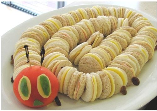 Este gusano loco o ciempiés se prepara a base de sandwiches redondos, que deberás fabricar tú mism@ en círculos perfectos a falta de pan de molde con esta forma… ¡No desesperes! Es una broma… Sólo tienes que preparar sandwiches integrales y de pan blanco, y armad@ de un cortapastas redondo, recortarlos con fuerza para que nada escape al corte certero de los moldes.