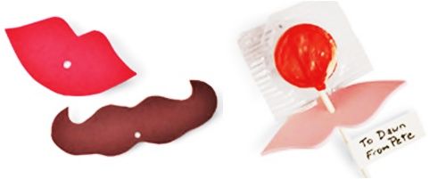 Puedes trazar tú la plantilla de las primeras formas de labios y bigotes, pero déjales luego que desplieguen su imaginación… Una vez hechas las formas, sólo queda practicarles un pequeño orificio por el que pasar el palito de la piruleta o chupachups y ¡listo!