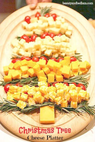 Como aún nos quedan días de fiesta que mejor opción que presentar los aperitivos o pica-pica con un poco de gracia y espíritu navideño. No es una receta, pero es una forma de que los peques os ayuden en la cocina. Os traemos este plato para los amantes del queso, se trata de una presentación original a base de taquitos de queso, puestos de tal forma que simulan un delicioso árbol de Navidad. Para darle un poquito de color añadir tiras de tomate cherry (como si fueran las luces de colores) y unas ramitas de romero.
