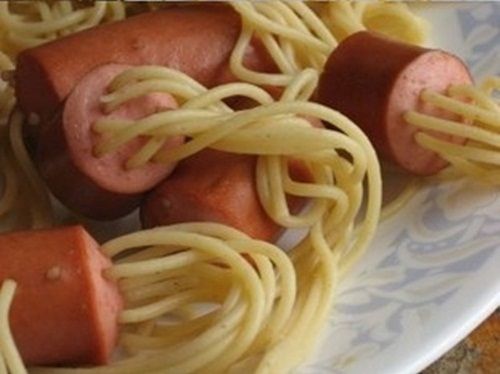 A los peques les encantan los espagueti y tambiĆ©n las salchichas de Francfort… ĀæQuĆ© tal unir ambos alimentos en una receta original de salchichas con espaguetis? Pues una excelente propuesta para preparar recetas creativas a los niƱos que no puedan rechazar… Hasta los que peor comen se sentirĆ”n encantados con esta receta de salchichas con espaguetis ensartados en ellas.