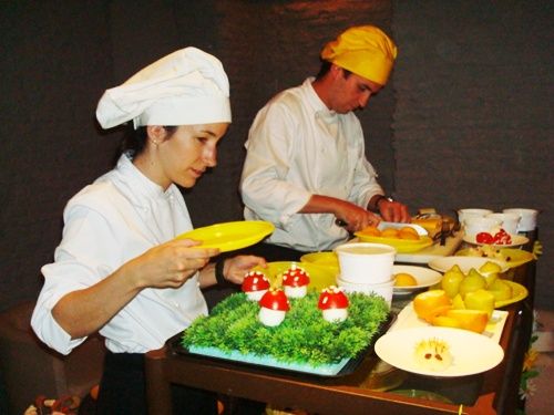 Aquí estoy de nuevo con las recetas creativas para hacer con niños del FANTA Cooking. Llegamos los embajadores/as de los blogs de niños y de cocina preferidos de los internautas, y ya estaba todo preparado por Ananá Catering para que los niños comenzaran su cursillo de cocina. Todos los peques ( de 3 a 11 años) lo pasaron en grande, y con sus gorros y delantales de cocineros chic prepararon estos platos con mucha gracia con sus pequeñas manitas. La mayor parte de las recetas fueron postres, con la excepción de los huevos en forma de seta. En casa ya hemos preparado los granizados de naranja. MMmmm… ¡Deliciosos!