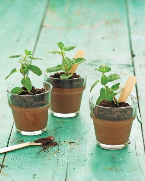 Te presento un postre un tanto engaƱoso… Si lo pones en una fiesta temĆ”tica relacionada con la jardinerĆa serĆ” una idea de lo mĆ”s divertido: se trata de unas macetas de menta fresca sobre sustrato de chocolate, que puedes preparar en casa fĆ”cilmente. En realidad se trata de un mousse de chocolate servido de esta forma tan vistosa: con galletas de chocolate trituradas y situadas justo encima.
