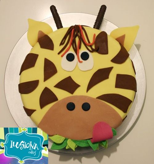 Esta tarta con la cara de una jirafa es una simpática propuesta para un cumpleaños infantil.