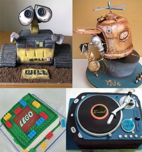 Luego están esas tartas que sólo pueden hacer profesionales de la repostería con una capacidad artística que para sí la quisieran artistas de otros ámbitos. Ahí es cuando nos damos cuenta de la dimensión creativa de la cocina, sin duda uno de sus componentes esenciales. Echa un vistazo a la tarta de Wall-E -¡impresionante!- a la tarta-Lego o al tocadiscos… Algunas tartas de las que ves aquí son de Creative Fan: no dejes de echar un vistazo a este enlace, porque hay diseños espectaculares…