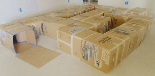 Pues bien la propuesta aquí es unir unas cuantas y en un espacio grande formar un tunel de cartón para que jueguen: ¡les encantará! Mmmm…. se me ocurre que es una excelente solución para entretenerlos durante una mudanza, ¿verdad?