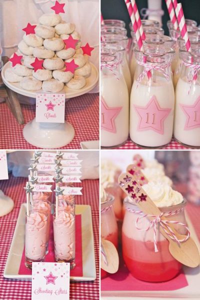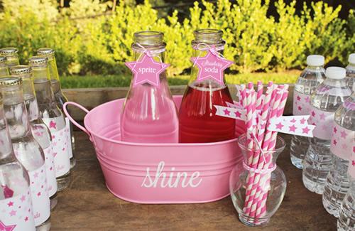 En este caso el rosa invade la fiesta infantil de una forma espectacular y bonita. Todo es rosa, incluso los invitados deben llevar alguna prenda de este color. Para que todo quede así de bonito la mamá que ha organizado la fiesta ha pensado en todo, no solo la decoración sino que los cupcakes, las bebidas, refrescos o golosinas tienen el blanco y el rosa como color.